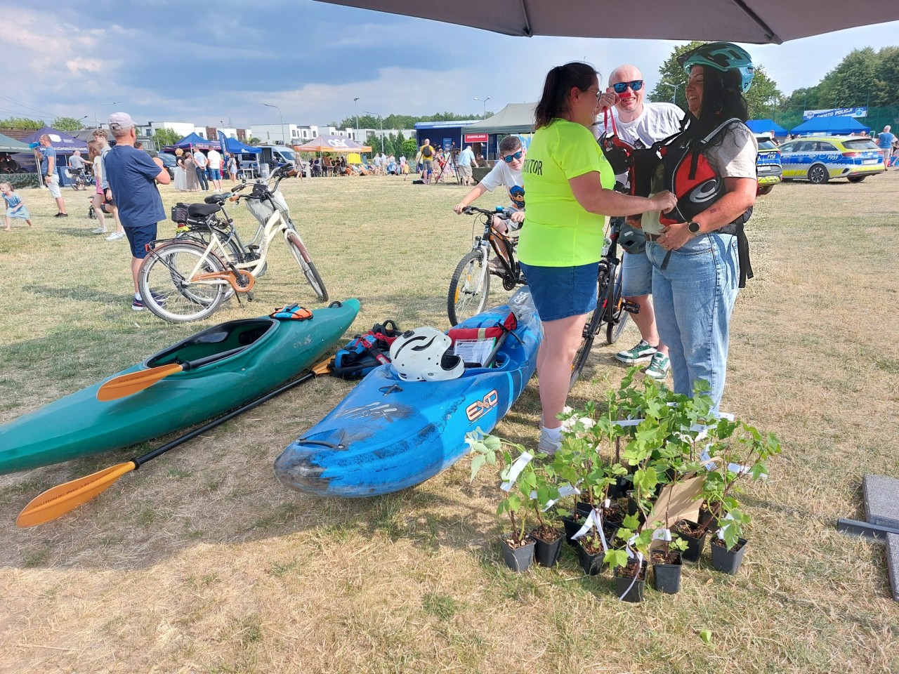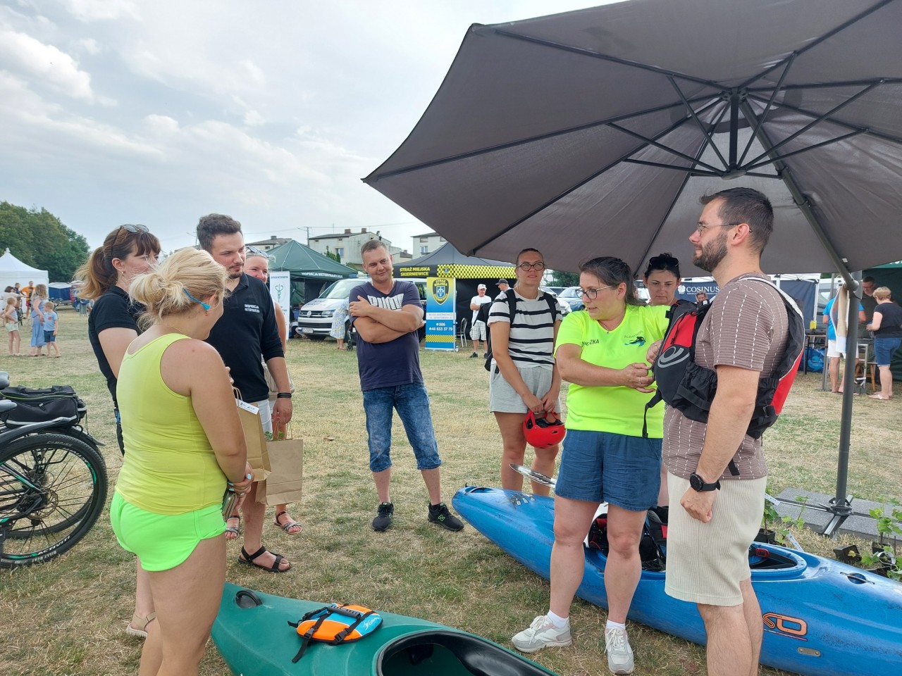 Na naszym stoisku poruszaliśmy kwestie bezpiecznego korzystania z kajaka poprzez szkolenia prowadzone przez członka Stowarzyszenia Łódzkiego Klubu Kajakowego Albatros. Demonstrowany był sprzęt kajakowy i metody ratowania topiącego, informowano także uczestników o obowiązku posiadania pozwolenia na spływy kajakowe rezerwatem Rawka oraz miejscach niebezpiecznych na rzece.