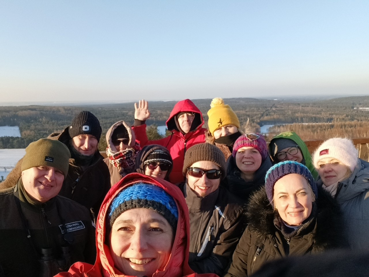 Spotkanie rozpoczęliśmy od wejścia na Górę Krzemyczą. Choć mróz dawał się we znaki, błękitne niebo i doskonała widoczność z tamtejszej wieży obserwacyjnej zrekompensowały trudy wspinaczki. To właśnie tam, patrząc na panoramę regionu, omówiliśmy: