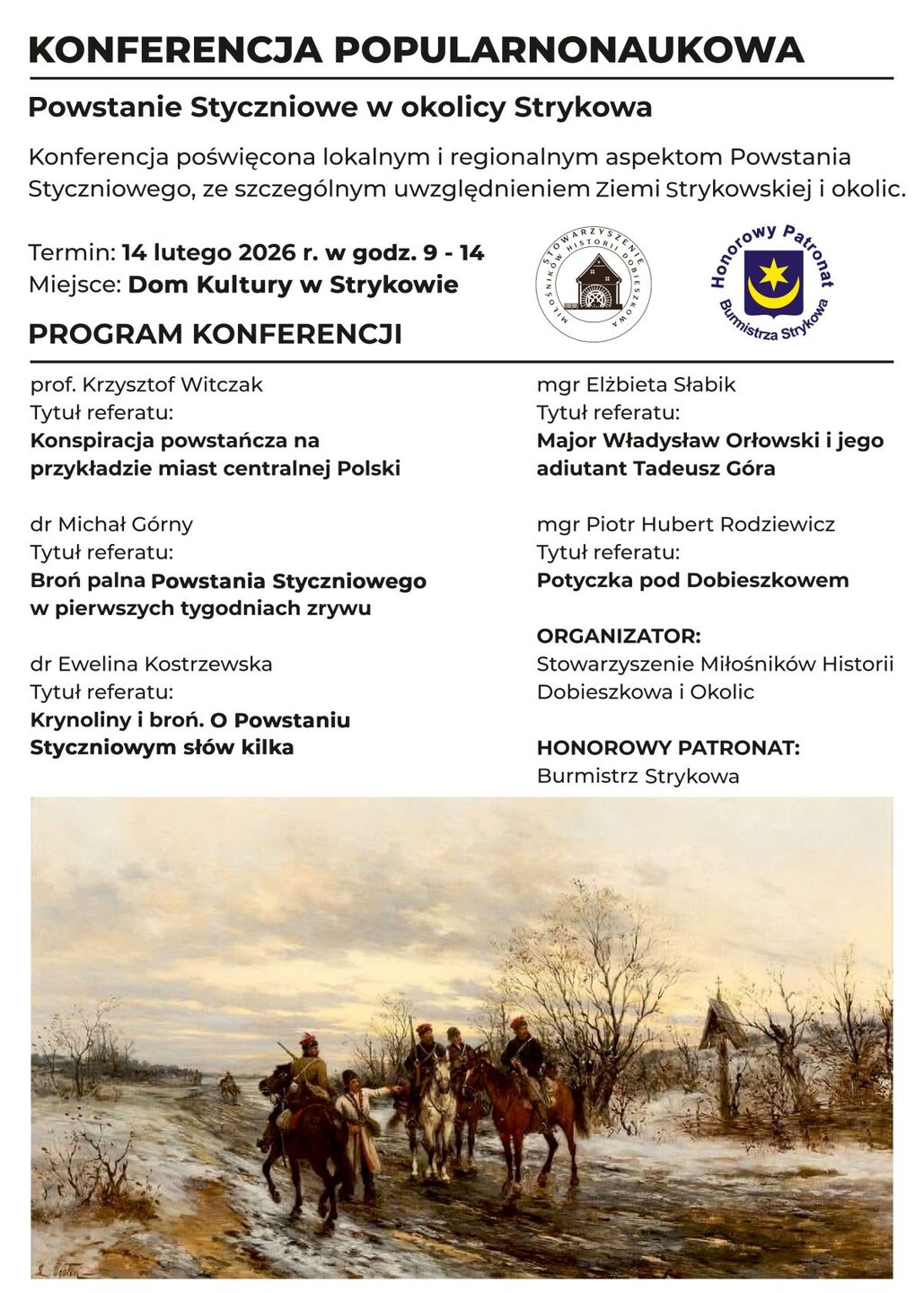 W sobotę, 14 lutego, odbyła się konferencja popularnonaukowa pt. „Powstanie Styczniowe w okolicy Strykowa”, zorganizowana przez Stowarzyszenie Miłośników Historii Dobieszkowa i Okolic.