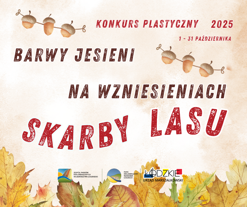 Serdecznie zapraszamy szkoły z terenu Parku Krajobrazowego Wzniesień Łódzkich do wzięcia udziału w konkursie plastycznym "Barwy jesieni na Wzniesieniach – skarby lasu” dla klas I-III.